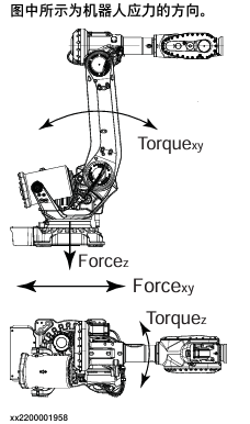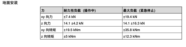 注意这些力和转矩都是运行期间很少会出现的极端值。这些值无法在同时达到其最大值!